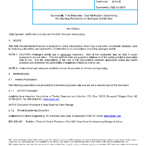 This SAE Recommended Practice is designed to reveal discoloration which may occur when nonmetallic materials used for trimming automobiles are exposed for a limited time to an atmosphere containing hydrogen sulfide.