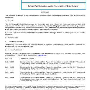 This SAE Information Report lists common port connection types used in truck, bus, truck-trailer, converter dolly, and multi-purpose vehicles with air brake systems at the time of publication. The purpose of the document is to give system designers and users a starting point for connector selection and a reference to the standards that govern these connector types. Also included are notes on common practices associated with these ports.