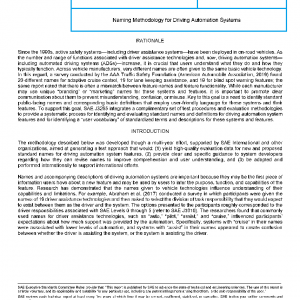 This document describes a systematic and rigorous process to: (1) identify and evaluate standard names and definitions for driving automation system features, and (2) identify a “user vocabulary” of terms and descriptions that [human] drivers use to describe driving automation system features.