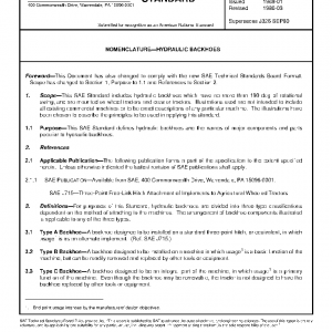 This SAE Standard includes hydraulic backhoes which have no more than 190 deg of rotational swing, and are mounted on wheel tractors and crawler tractors. Illustrations used are not intended to include all existing commercial machines or to be exact descriptions of any particular machine. The illustrations have been chosen to describe the principles to be used in applying this standard.