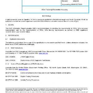 This SAE Information Report provides SAE’s recommendations for meeting the requirements for REAL NOx accuracy demonstration and for the implementation of REAL NOx binning requirements as defined in OBD regulations 13 CCR 1971.1 and 13 CCR 1968.2.