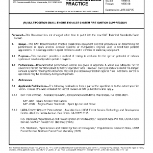 This SAE Recommended Practice establishes equipment and test procedures for determining the performance of spark arrester exhaust systems of multiposition engines used in hand-held portable applications. It is not applicable to spark arresters used in vehicles or stationary equipment.