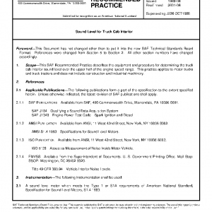 This SAE Recommended Practice describes the equipment and procedure for determining the truck cab interior sound level over the upper half of the engine speed range. This practice applies to motor trucks and truck-tractors and does not include construction and industrial machinery.
