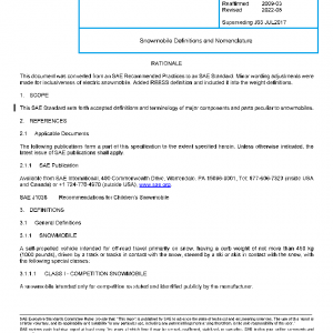 This SAE Standard sets forth accepted definitions and terminology of major components and parts peculiar to snowmobiles.
