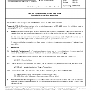 This document further establishes a uniform means of testing and evaluating performance of hydraulic hose assemblies.