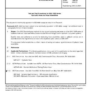 This SAE Standard gives methods for testing and evaluating performance of the SAE 100R series of hydraulic hose and hose assemblies (hose and attached end fittings) used in hydraulic fluid power systems.