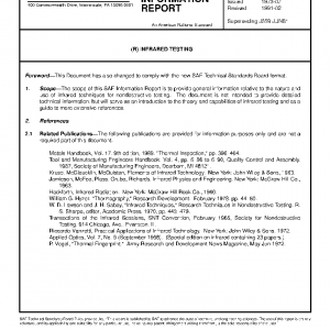 The scope of this SAE Information Report is to provide general information relative to the nature and use of infrared techniques for nondestructive testing. The document is not intended to provide detailed technical information, but will serve as an introduction to the theory and capabilities of infrared testing and as a guide to more extensive references.