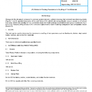 This test can be used to determine the resistance to scuffing of test specimens such as fiberboards, fabrics, vinyl-coated fabrics, leathers, and similar trim materials.