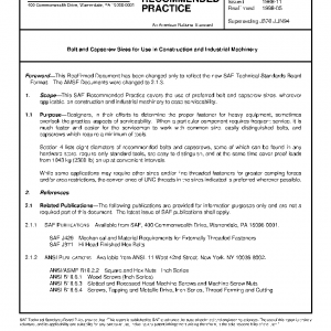 This SAE Recommended Practice covers the use of preferred bolt and capscrew sizes, wherever applicable, on construction and industrial machinery to ease serviceability.