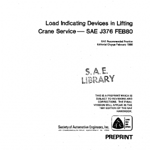 This SAE Recommended Practice applies to cranes used in lifting crane service which are equipped with load indicating devices.