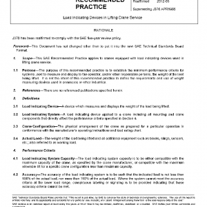 This SAE Recommended Practice applies to cranes equipped with load indicating devices used in lifting crane service.