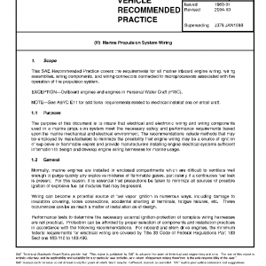 This SAE Recommended Practice covers the requirements for all marine inboard engine wiring, wiring assemblies, wiring components, and wiring connectors connected to microprocessors associated with the operation of the propulsion system.