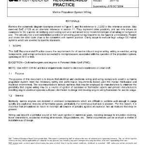 This SAE Recommended Practice covers the requirements for all marine inboard engine wiring, wiring assemblies, wiring components, and wiring connectors connected to microprocessors associated with the operation of the propulsion system, operating at 50 V or less.