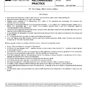 This SAE Recommended Practice provides definitions of common terms used in SAE Documents pertaining to motor vehicle lighting. It covers not only basic lighting terms but also terms which identify major segments of technical reports.