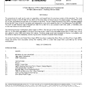 These H-point devices provide a method for reliable layout and measurement of occupant seating compartments and/or seats. This document specifies the procedures for installing the H-point machine (HPM) and using the HPM to audit (verify) key reference points and measurements in a vehicle.