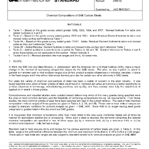 Standard cast or heat analysis limits and ranges for the various elements of carbon steels are given in Table 4. In this table, range is the arithmetical difference between the minimum and maximum limits (that is, 0.19 to 0.25 is a 0.06 range). These cast or heat limits and ranges are also subject to standard variations for product analysis as given in SAE J409.