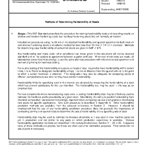 This SAE Standard prescribes the procedure for making hardenability tests and recording results on shallow and medium hardening steels, but not deep hardening steels that will normally air harden.