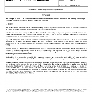 This SAE Standard prescribes the procedure for making hardenability tests and recording results on shallow and medium hardening steels, but not deep hardening steels that will normally air harden.