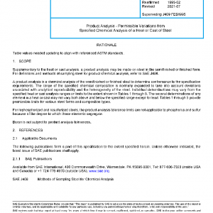 Supplementary to the heat or cast analysis, a product analysis may be made on steel in the semifinished or finished form. For definitions and methods of sampling steel for product chemical analysis, refer to SAE J408.