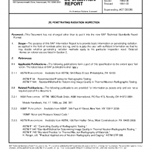 The purpose of this SAE Information Report is to provide basic information on penetrating radiation, as applied in the field of nondestructive testing, and to supply the user with sufficient information so that he may decide whether penetrating radiation methods apply to his particular inspection need. Detailed information references are listed in Section 2.