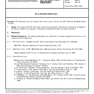 The scope of this SAE Information report is to provide basic information on ultrasonics, as applied in the field of nondestructive inspection. References to detailed information are listed in Section 2.