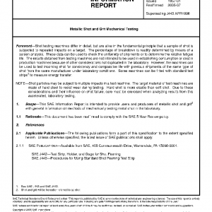 This SAE Information Report is intended to provide users and producers of metallic shot and grit2 with general information on methods of mechanically testing metal shot in the laboratory.