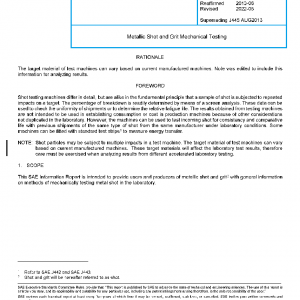 This SAE Information Report is intended to provide users and producers of metallic shot and grit2 with general information on methods of mechanically testing metal shot in the laboratory.