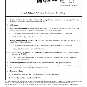 This SAE Recommended Practice establishes performance requirements for hand-operated brake systems on recreational, noncompetition snowmobiles.