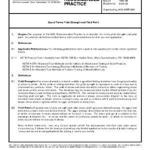 The purpose of this SAE Recommended Practice is to describe the terms yield strength and yield point. Included are definitions for both terms and recommendations for their use and application.