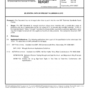 The SAE Standards for wrought aluminum alloys cover materials with a considerable range of properties and other characteristics, but do not include all of the commercially available materials. If none of the materials listed in Tables 1 through 7 provides the characteristics required by a particular application, users may find it helpful to consult with the suppliers of aluminum alloy products. See companion document, SAE J1434.
