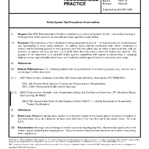 This SAE Recommended Practice establishes a uniform procedure for the level surface testing of hand-operated brake systems on recreational noncompetitive snowmobiles.