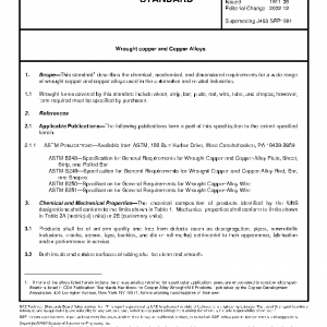This standard1 describes the chemical, mechanical, and dimensional requirements for a wide range of wrought copper and copper alloys used in the automotive and related industries.