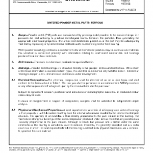 While powder metallurgy embraces a number of fields wherein metal powders may be used as raw materials, this standard is concerned primarily with information relating to mechanical components and bearings produced from iron-base materials.