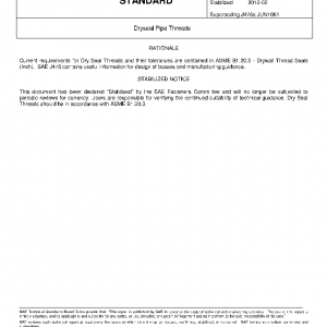 The Dryseal American Standard Taper Pipe Thread, the Dryseal American Fuel Internal Straight Pipe Thread and the Dryseal American Intermediate Internal Straight Pipe Thread covered by this standard conform with the American Standard ASA-B2.2. The Dryseal SAE-Short Taper Pipe Thread in this standard conforms with the Dryseal American Standard Taper Pipe Thread except for the length of thread, which is shortened for increased clearance and economy of material.
