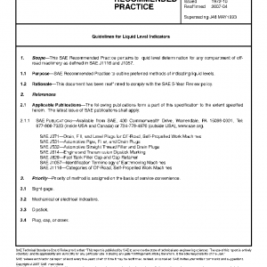 This SAE Recommended Practice pertains to liquid level determination for any compartment of off-road machinery as defined in SAE J1116 and J1057.
