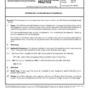 This SAE Recommended Practice has been established for the purpose of providing design criteria and suggested dimensional proportions which may be used for ball studs and ball stud socket assemblies as used on steering systems or control mechanisms of passenger vehicles, trucks and off-road equipment.