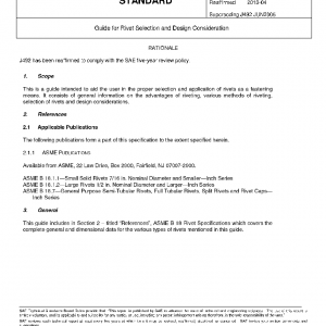 This is a guide intended to aid the user in the proper selection and application of rivets as a fastening means. It consists of general information on the advantages of riveting, various methods of riveting, selection of rivets and design considerations.