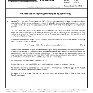This Information Report along with SAE J500 and J501 is generally understood to be technically obsolete for the design of new applications. However, it is listed for those existing applications where it may be required. For the design of new applications, consult ANSI B92.1-1970Involute Splines and Inspections Standard.