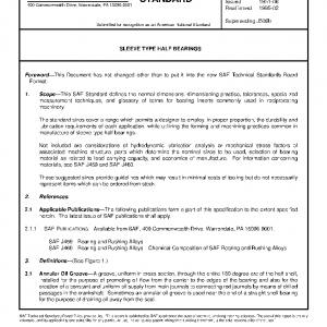 Not included are considerations of hydrodynamic lubrication analysis or mechanical stress factors of associated machine structural parts which determine the nominal sizes to be used, selection of bearing material as related to load carrying capacity, and economics of manufacture. For information concerning materials, see SAE J459 and SAE J460.