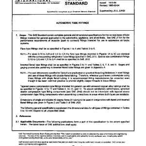 This SAE Standard covers complete general and dimensional specifications for the various types of tube fittings intended for general application in the automotive, appliance, and allied fields. See SAE J1131 for the performance requirements of reusable (push to connect) fittings intended for use in automotive air brake systems.