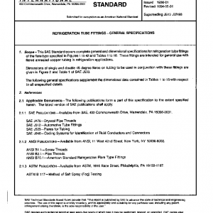 This SAE Standard covers complete general and dimensional specifications for refrigeration tube fittings of the flare type specified in Figures 1 to 42 and Tables 1 to 16. These fittings are intended for general use with flared annealed copper tubing in refrigeration applications.