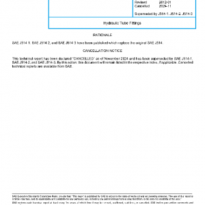 This SAE Standard covers complete general and dimensional specifications for 37 degree flared and flareless types of hydraulic tube fittings and O-ring plugs. Also included are pipe fittings and adapter unions for use in conjunction with these tube fittings. These fittings are intended for general application in hydraulic systems on industrial equipment and commercial products.