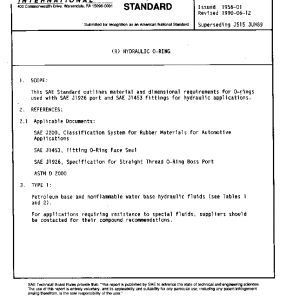 This SAE Standard outlines material and dimensional requirements for O-rings used with SAE J1926 port and SAE J1453 fittings for hydraulic applications.