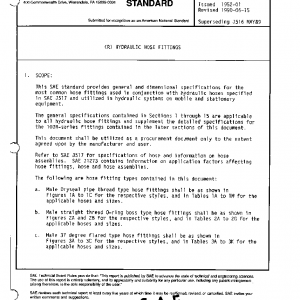 This SAE standard provides general and dimensional specifications for the most common hose fittings used in conjunction with hydraulic hoses specified in SAE J517 and utilized in hydraulic systems on mobile and stationary equipment.