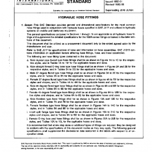 This SAE Standard provides general and dimensional specifications for the most common hose fittings used in conjunction with hydraulic hoses specified in SAE J517 and utilized in hydraulic systems on mobile and stationary equipment.