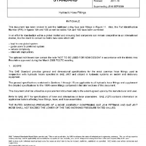 This SAE Standard provides general and dimensional specifications for the most common hose fittings used in conjunction with hydraulic hoses specified in SAE J517 and utilized in hydraulic systems on mobile and stationary equipment.