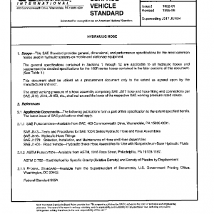 This SAE Standard provides general, dimensional, and performance specifications for the most common hoses used in hydraulic systems on mobile and stationary equipment.