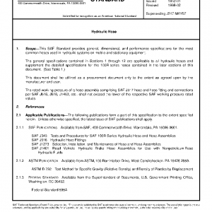 This SAE Standard provides general, dimensional, and performance specifications for the most common hoses used in hydraulic systems on mobile and stationary equipment.
