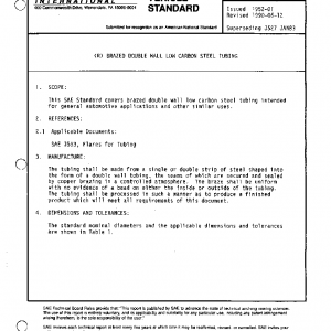 This SAE Standard covers brazed double wall low carbon steel tubing intended for general automotive applications and other similar uses.