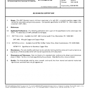 This SAE Standard covers minimum requirements for soft (061) annealed seamless copper tube intended for automotive and general purposes. (Comparable specification is ASTM B 75. Other copper tube is covered in SAE J463.)